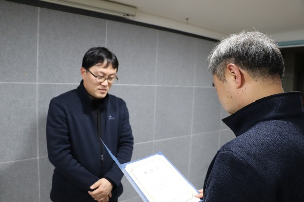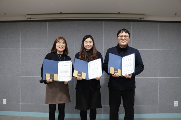 - 2019년 종무식은 근무평정에 따른 우수직원 표창 3명(정인환, 한웅비, 박초원)에 대한 시상과 우수사회복무요원 표창, 승진자에 대한 임명장 전달(정인환, 지은미, 박초원)순으로 진행되었으며, 남성주 관장의 송년인사이후 2019년 시무식에 작성했던 '2019년 내가 바라는 한가지'에 대한 직원들이 이야기를 나누는 과정으로 진행되었습니다.