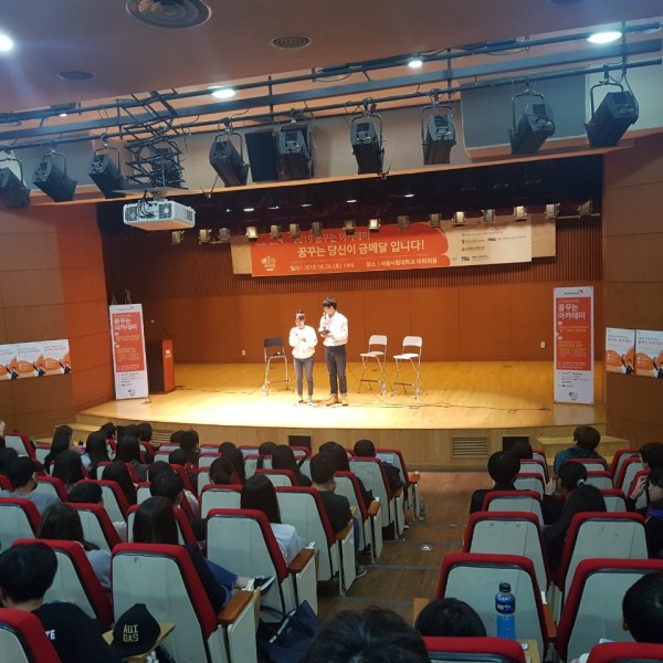 전체 강연 후 대학생 멘토와의 만남이 진행되었습니다~ 8개 분야(음악, 스포츠, 산업디자인, 국사, 컴퓨터, 생명, 경영, 건축 등) 중 꿈디자이너들이 관심 있는 학과를 선택하였습니다!!