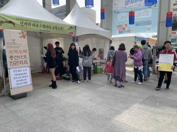 저희 청정의 부스는 인권퀴즈와 풍선다트게임을 진행하고, 소떡소떡과 아이스티를 판매하는 부스로 운영이 되었는데요~