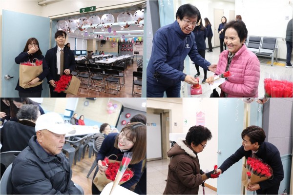 어르신들께 장미꽃도 나누어 드렸습니다.