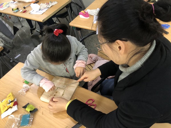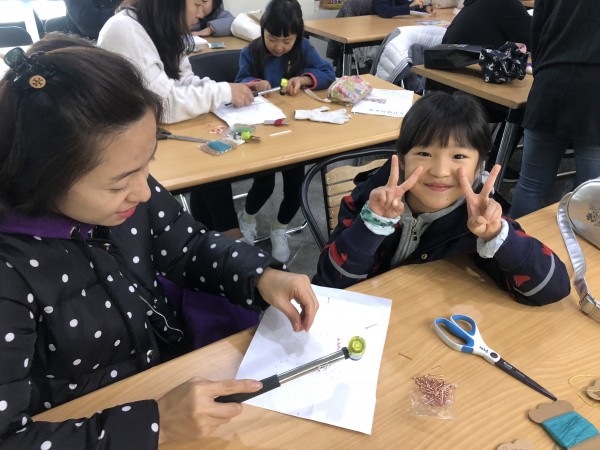 부모와 아이가 함께 도와가며 원하는 모양으로 실을 감다보니 우리 가족이 함께 만든 멋진 작품이 완성되었어요~