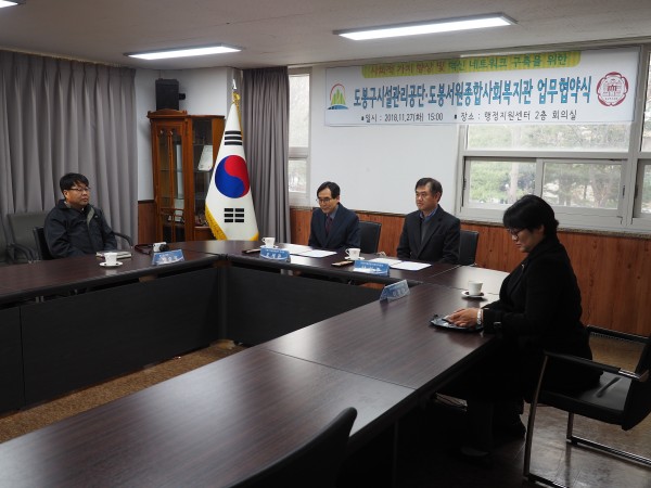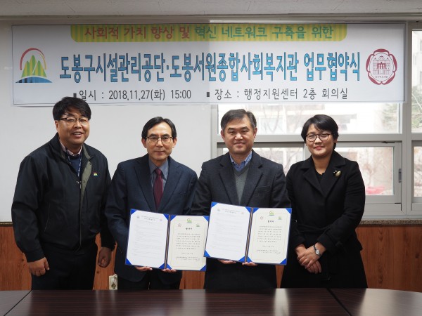 11월 27일 (화) 도봉구시설관리공단과 도봉서원종합사회복지관 업무협약을 맺었습니다.