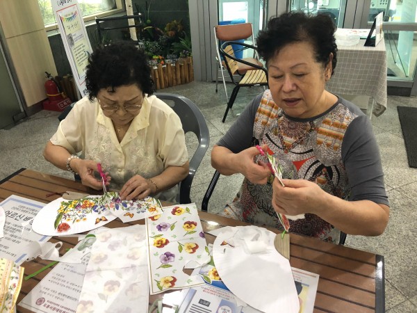 냅킨아트 부채를 시작으로 풍경액자 만들기, 발 지압, 레크리에이션까지