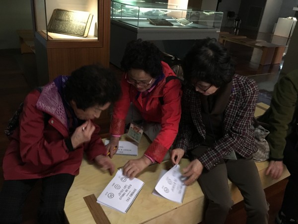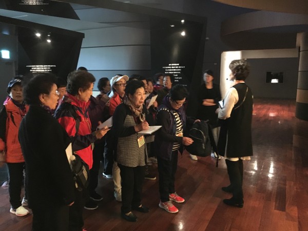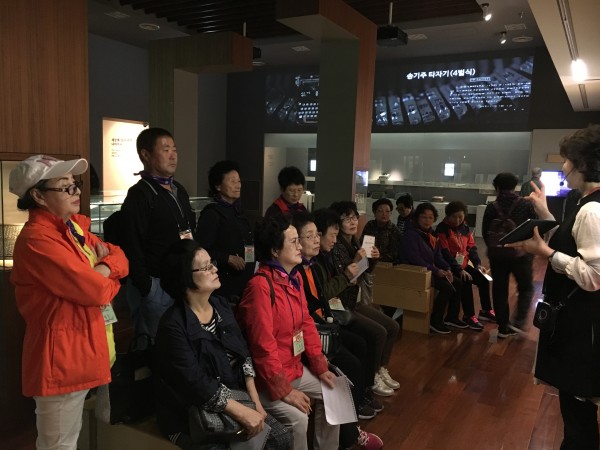 전문해설사의 해설에 모두 집중하며 열심히 듣고 관람하는 모습이