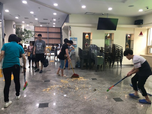 영화가 끝난 뒤 끝까지 남아 같이 청소하고 분리수거하며