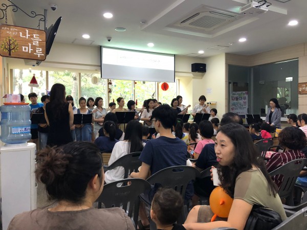 8월에는 뮤직브레인 팀에서 엄마와 아이들이 함께 연주하는 공연과 마을영화관을 찾아주신 모든 주민들이 함께 노래부를 수 있도록 준비해주셨습니다.