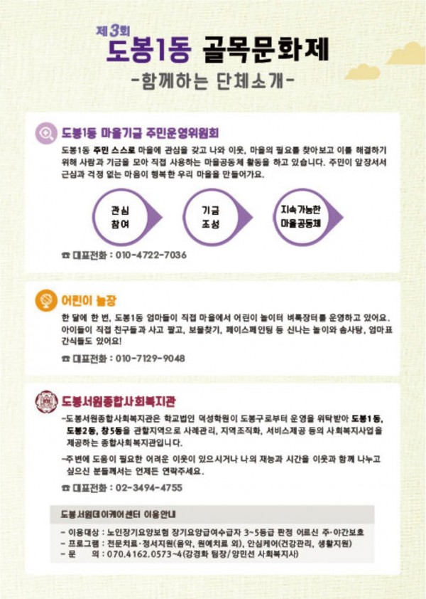 [골목문화제] 제3회 도봉1동 골목문화제가 열립니다!