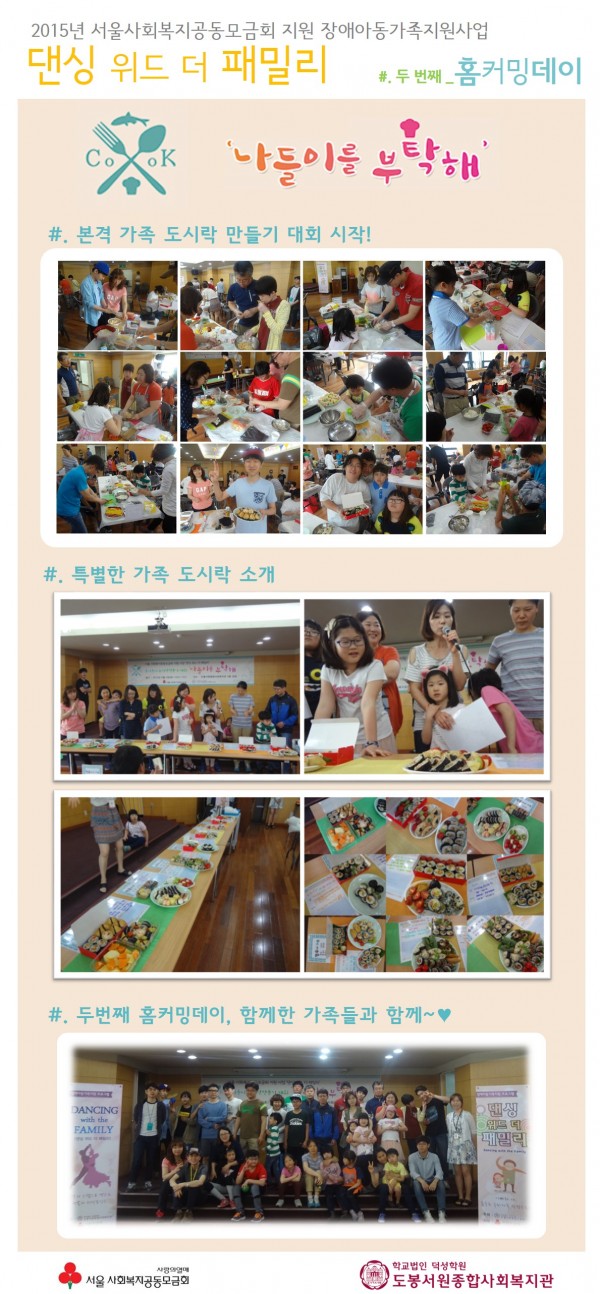 * 내용 : 홈커밍데이 2차, 가족 나들이 도시락 만들기 대회(가족 특별 레시피 소개, 나들이 도시락 만들기, 맛평가 및 시상 등)