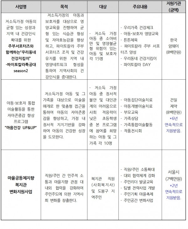 본 관에서는 이상과 같이 2015년에 3개 공모사업에 선정되었습니다.