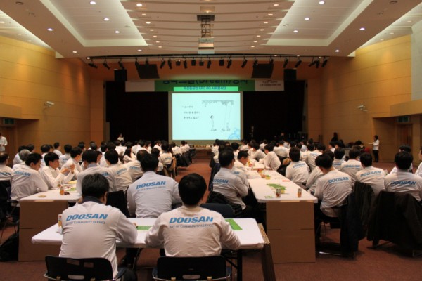 지난 3월 23일, 도봉구청 2층 강당에서 두산중공업 임직원 120여명과 함께