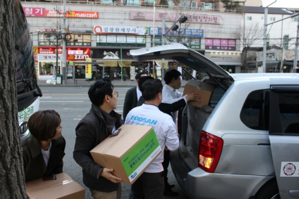 이날 '행복드림(Dream)상자'에 참여한 두산중공업 임직원분들은 아동, 청소년들에게 정성을 담아 손수 엽서도 작성하고, 작성한 엽서와 함께 생필품을 포장하고, 배달하는 활동을 진행하였습니다.
