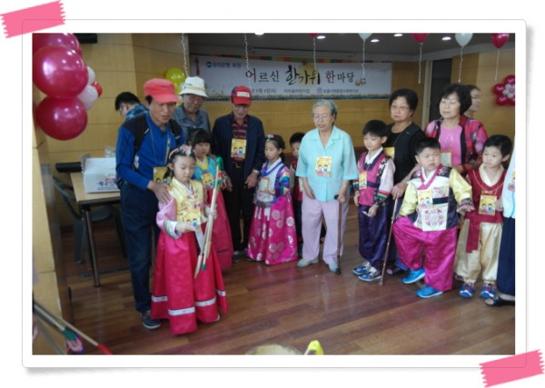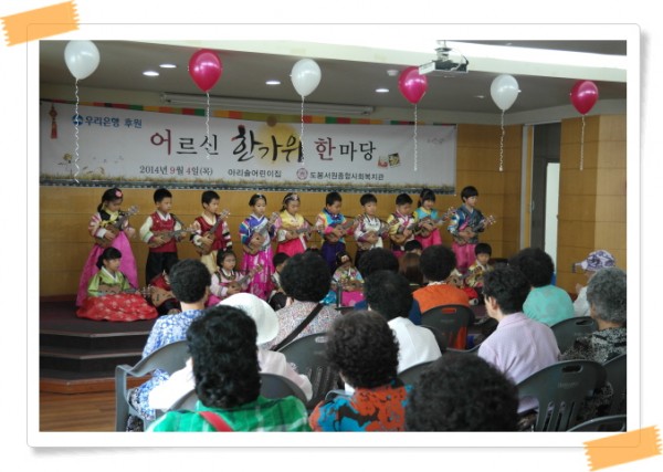 우리은행의 후원으로 아리솔어린이집과 함께 '어르신 한가위 한마당'을 진행하였습니다.
