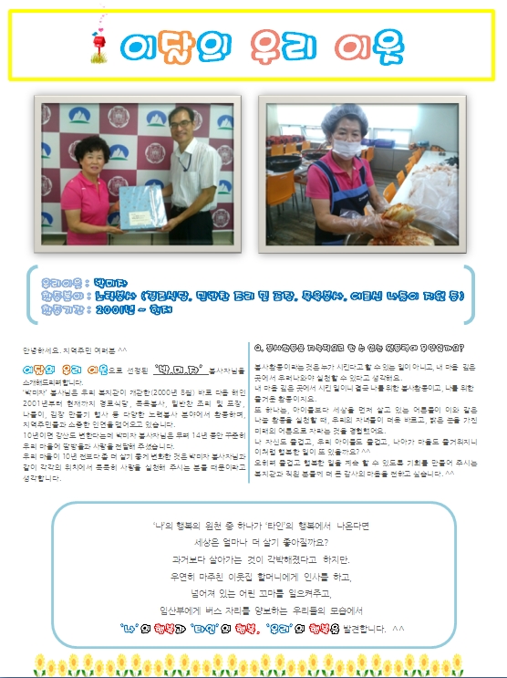 [자원봉사자관리] 이달의 자원봉사자 '박미자'님을 소개합니다.^^