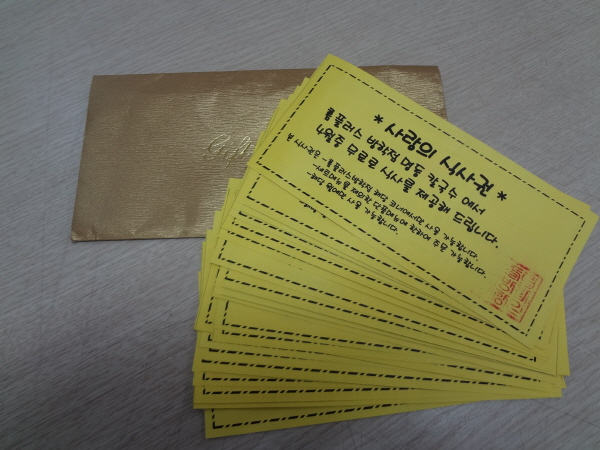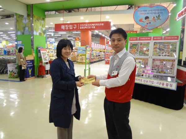 2012년 4월 12일 홈플러스 방학점으로부터 홈플러스 내 푸드코트에서 사용할 수 있는 사랑의 식사권 20매를 지원받았습니다.
