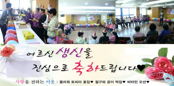 본관이용 어르신 중 3월, 4월 생신을 맞으신 어르신들과 타 어르신들이 함께 참여하여 축하해주는 생신잔치를 진행하였습니다. 행복 MC 이혜천 강사님와 함께 한 생신잔치는 본관 임병석 운영위원장의 사전 색소폰 공연, 생신자 케잌컷팅, 선물전달, 축하메세지 전달 순으로 진행되었으며 플라워 토피아 꽃집, 절구와 공이 떡집, 비타민 오션에서 현금 및 물품 후원으로 진행하였습니다. 어르신 생신을 진심으로 축하드립니다 !