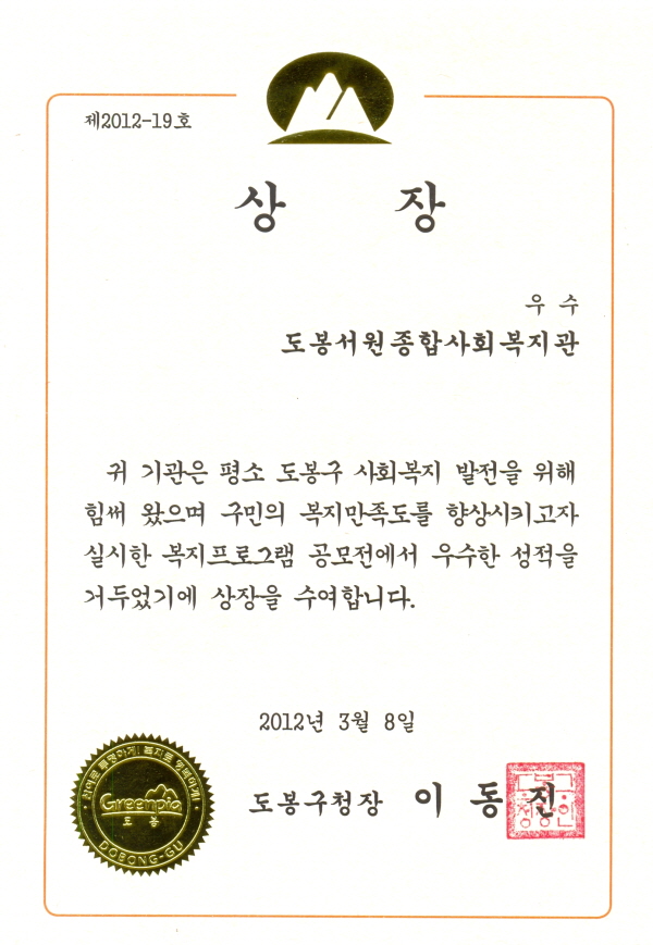 도봉서원종합사회복지관은 도봉구(복지정책과)에서 시행하는 지역 내 복지자원 발굴을 위한 복지프로그램 공모에 「지역사회 기반의 맞춤형 On-line 자원연계 system 구축」를 제안하여 선정되었습니다.