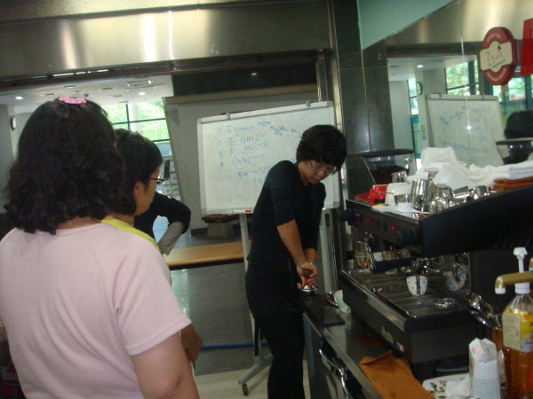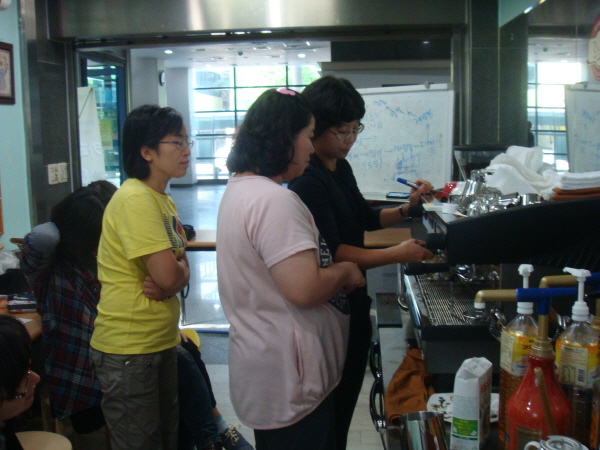 생두를 로스팅(에스프레소 원두로 만드는 과정)하는 체험과 에스프레소 머신을 이용하여 직접 커피를 추출해서 시음하는 과정을 체험하였습니다.