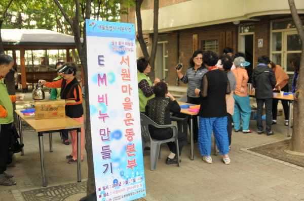 EM비누를 같이 만들면서 오랜만에 만나는 이웃, 새롭게 만나는 이웃과 이야기를 나눌 수 있었고, 서원아파트주민이라는 동질감을 느낄 수 있는 주민 간 소통의 장이되었습니다.