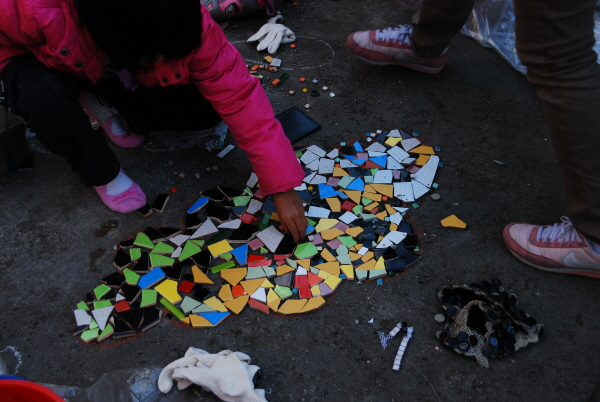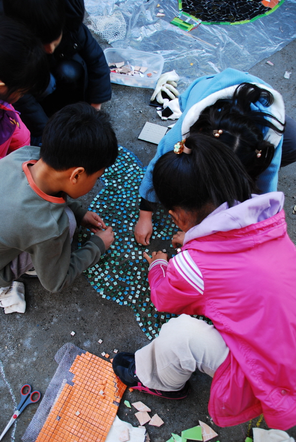 11월28일 오픈을 향해 동네아이들과 열심히 쉼터를 꾸미고 있습니다.