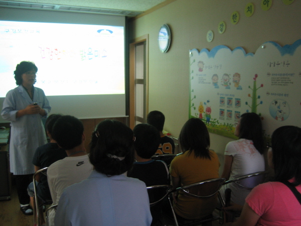 2008년 7월21일~22일 이틀동안 도봉보건소와 연계하여 청소년과 아동을 대상으로 자립적으로 구강을 관리할 수 있도록 구강보건교육 및 잇솔질 실습교육 그리고 구강검진을 실시하였습니다. 구강검진후 치과진료가 필요한 아동 및 청소년은 스켈링과 잇몸치료 그리고 치아홈메우기등 2차 치료를 무료로 받을 수 있었습니다.
