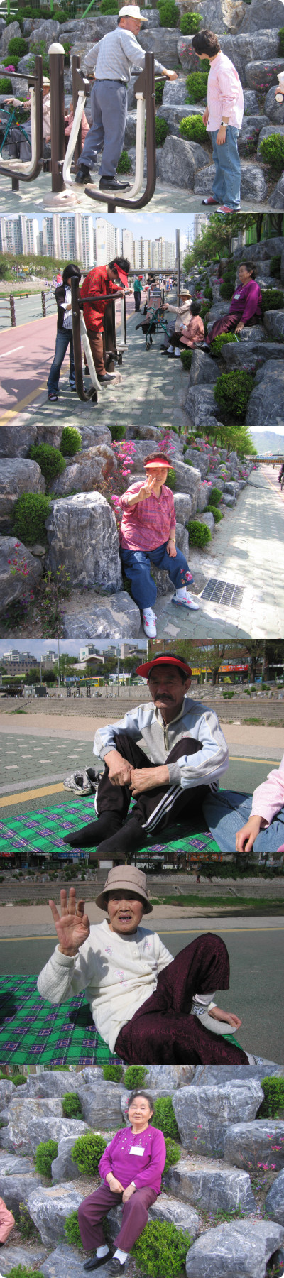 따사로운 햇살 아래서 운동기구로 가볍게 운동도 하시며