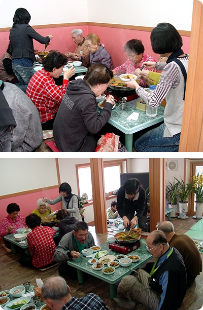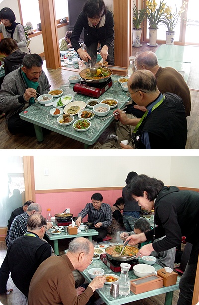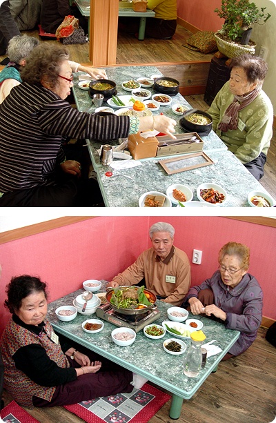 어르신들의 취향에 따라 오리탕과 보신탕을 맛있게 드셨는데요