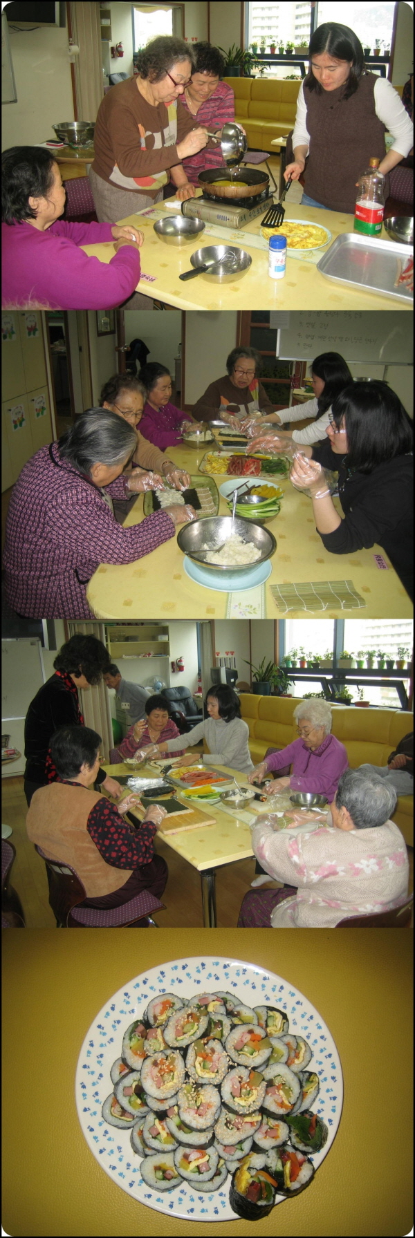 1월 17일 목요일날 치매주간보호센터에서 음식만들기로 김밥을 만들었습니다.